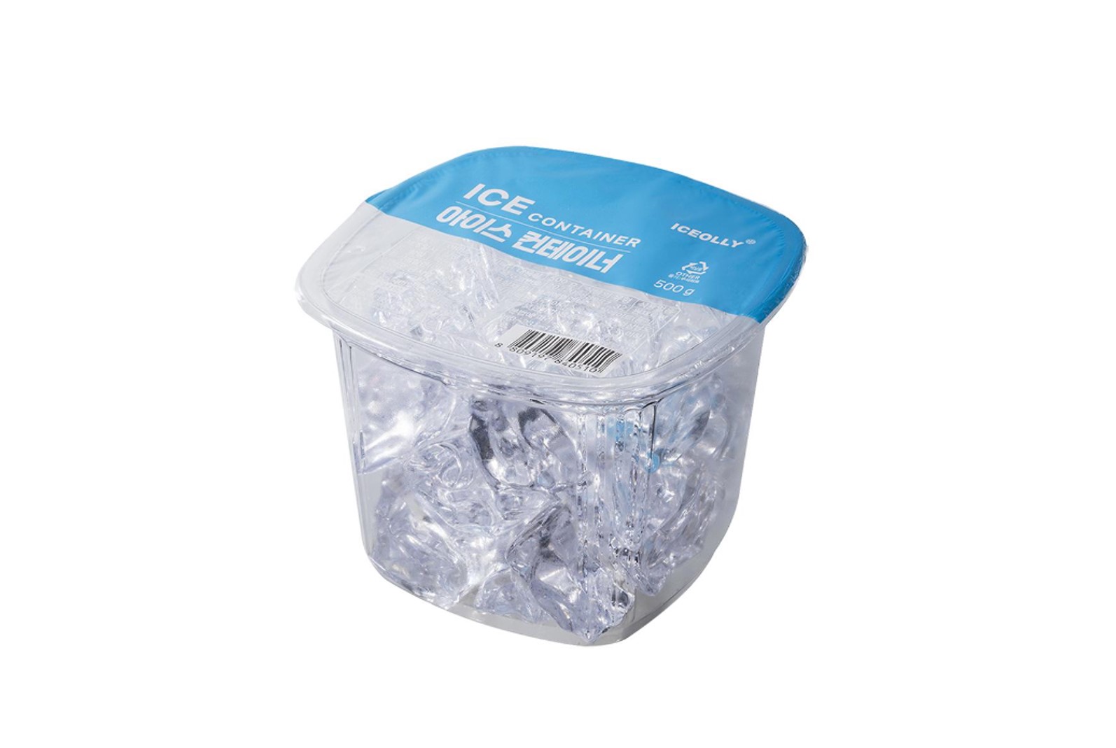 아이스 컨테이너(500g, 1,800원)는 얼음이 잘 녹지 않도록 고안된 아이스페일(얼음통)에 첨단 제빙 기술로 만든 투명하고 단단한 돌얼음을 담아낸 프리미엄 얼음 상품이다.