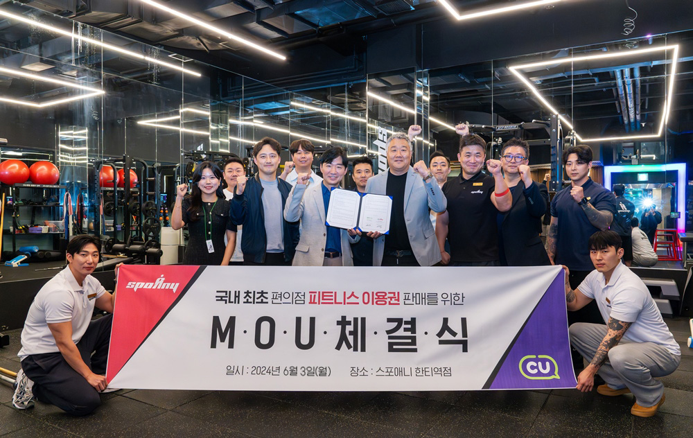 관련하여 CU와 스포애니를 운영하는 케이디헬스케어는 3일 스포애니 한티역점에서 국내 최초 편의점 피트니스 이용권 판매를 위한 MOU를 체결했다. 협약식에는 BGF리테일 박종성 마케팅실장, 케이디헬스케어 이상억 영업총괄본부장 등이 참석했다.