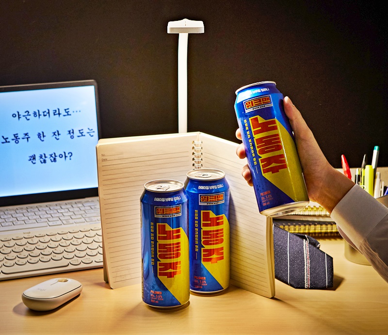 어메이징브루잉과 워크맨은 지난 1월 장성규, 오마이걸 효정, 김기리가 출연한 ‘워크맨 – 수제맥주 공장 알바편’에서 인연을 맺었다. 해당 콘텐츠가 조회수 233만 뷰를 돌파할 만큼 큰 호응을 얻자 양사는 주요 구독자층이자 소비자층인 2030대를 타겟으로 ‘노동주’를 공동 기획했다.