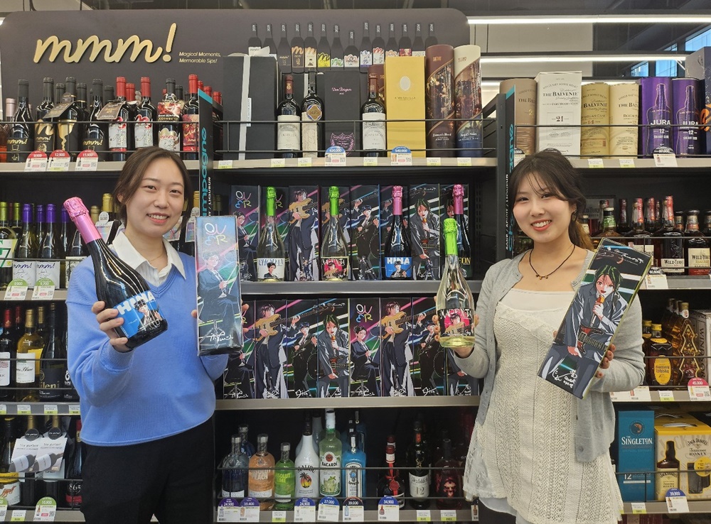 특히, CU는 QWER 멤버들을 톡톡 튀는 캐릭터 이미지로 그려 제품 패키지에 담았다. 레드 와인에는 멤버 시연과 히나, 화이트에는 쵸단과 마젠타의 캐릭터를 입혔다. 라벨 디자인은 일본 시티팝 컨셉의 키치한 팝아트로 유명한 일러스트레이터 작가 ‘나무13’이 맡았다.