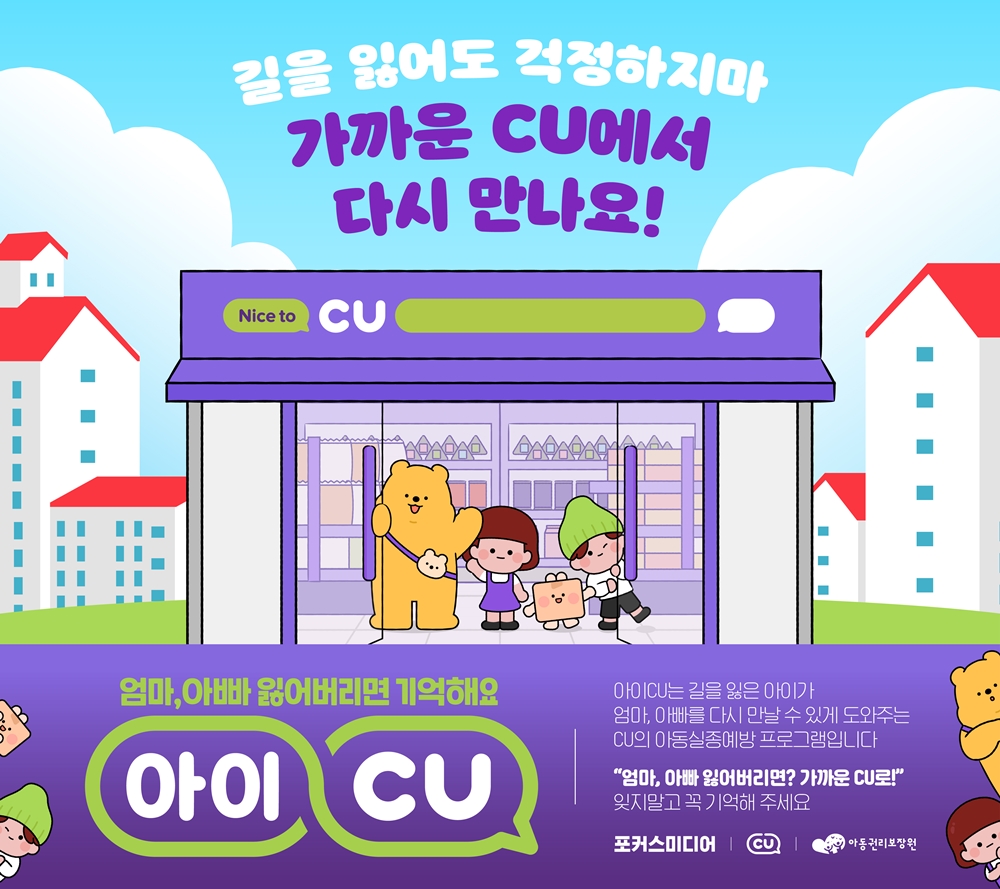 이 밖에도 CU는 어린이 안전에 대한 사회적 관심을 높이기 위해 매년 아동안전 그림 공모전, 아동안전 시민상, 장기실종 아동 찾기 캠페인 CU SOON 등을 전개하고 있으며 지난 2022년부터 ‘아동안전백서’를 발간, 아동 관련 학회들과 학술 연구도 활발히 진행 중이다.