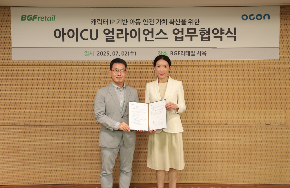 BGF리테일과 오콘은 2일 서울시 강남구 BGF리테일 사옥 7층 대회의실에서 아동 안전 협력 네트워크인 ‘아이CU 얼라이언스’ 협약을 체결했다.