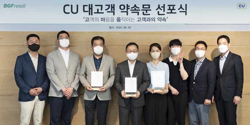 CU는 이달 초 가맹점주, 스태프, 임직원 등이 모인 가운데 점포의 지속적인 성장을 위해 상품, 서비스, 점포 환경을 최상의 운영력으로 유지하겠다는 내용의 ‘고객의 마음을 움직이는 약속문(이하 고·마·움 약속문)’을 공포했다.