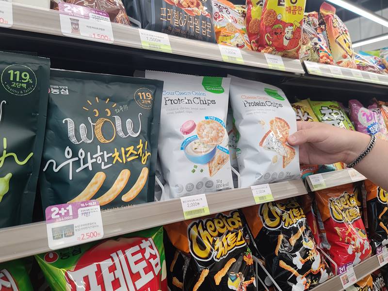 - 프로틴 칩 2종, 국내산 닭가슴살 함유돼 단백질 11g 포함··· 동일 용량 상품 대비 3배 높아
