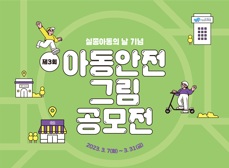 지난 2021년 시작한 전국 아동 안전 그림 공모전은 어린이의 안전을 지키는 다양한 주제로 진행되고 있다. 해당 공모전은 어린이가 그림을 그리며 스스로 안전 대응 수칙을 익히도록 돕고 나아가 아동이 안전한 사회를 만드는데 기여하기 위해 기획됐다.