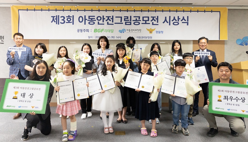 편의점 업계 1위 CU를 운영하는 BGF리테일이 경찰청, 아동권리보장원과 함께 개최한 ‘2023 아동 안전 그림 공모전’ 수상작을 발표하고 시상식을 열었다.