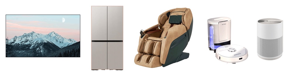 삼성전자 QLED TV 85인치, 삼성전자 인피니트 냉장고, 코지마 안마의자 아틀리에 등 인기 인테리어 생활가전부터 헬스케어 가전까지 다양한 상품들을 판매한다.