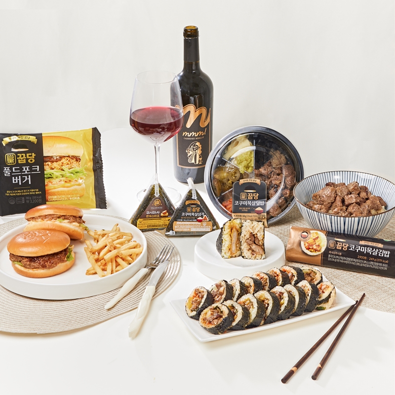 꿉당 코쿠미 목살덮밥(4,800원), 꿉당 코쿠미 목살 김밥(2,900원)과 삼각김밥(1,300원), 꿉당 풀드포크 버거(3,200원)는 꿉당에서 가장 유명한 목살과 코쿠미밥을 활용해 만든 간편식품이다.
