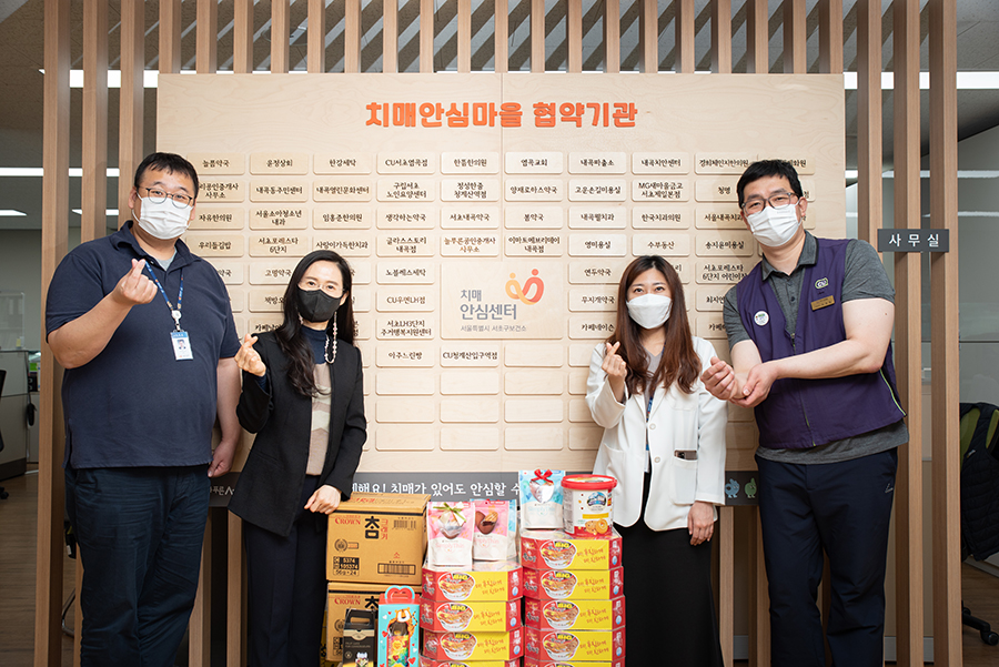 오늘 점주님이 마음을 전달할 곳은 서초구치매안심센터입니다. 이곳은 지역의 어르신들에게 치매예방, 조기진단 및 치료와 재활, 진행 단계별 적정 관리 등의 ‘치매통합관리 서비스’를 제공하는 곳입니다. 지역사회를 기반으로 치매를 관리하며 사회적 안전망을 구축하고 있으며, CU서초법원로점도 이러한 움직임에 적극 동참하고 있습니다.