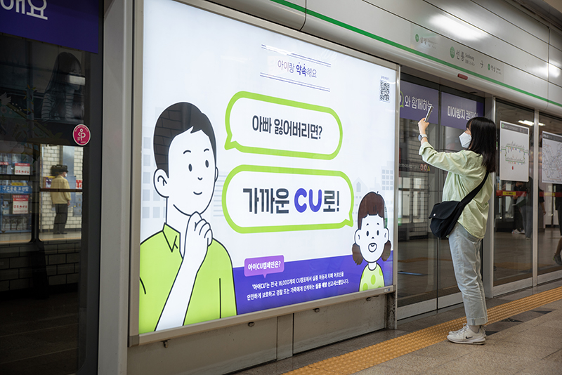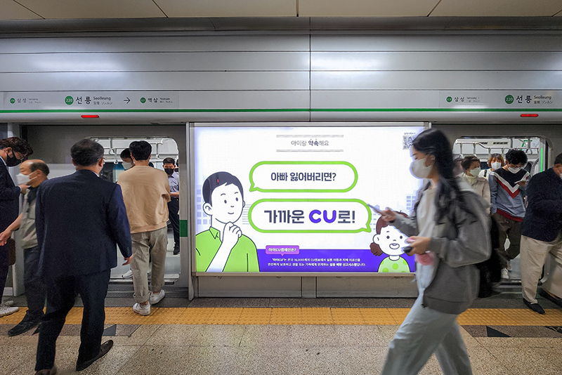 “유동 인구가 많은 곳 중에서도 자녀를 키우는 회사원의 비율이 높은 곳을 선택했어요. 아이들에게 CU가 안전하다는 것을 전달할 매개체 역할로 부모님을 선택한 거죠. 광고 게재가 결정된 후, 답사를 간 적도 있어요. 선릉역만 봐도 출퇴근 시간 외 승하차 고객의 비율이 많아요. 그래서 광고 전달 효과 또한 높을 것으로 기대하고 있습니다.”