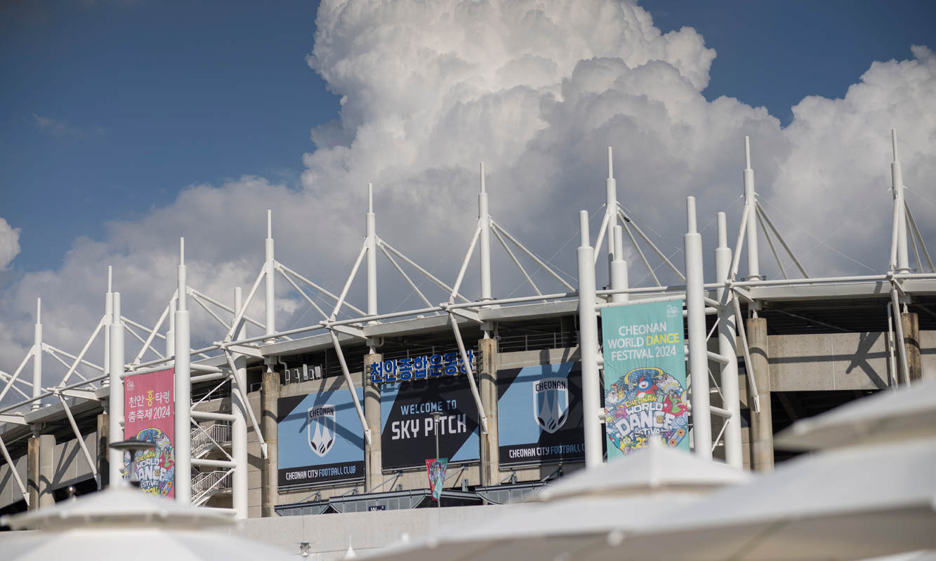 지난 9월 25일 정오, 천안종합운동장에 조금씩 사람들이 모여들기 시작합니다. 정장 입은 중년의 회사원, 한복 입고 곱게 쪽을 찐 여인들, 머리에 깃털 장식을 달고 울끈불끈 근육을 드러낸 사내들, 탈색한 머리에 캡모자를 눌러쓴 MZ 청소년들까지. 한 자리에서 보기가 힘들 것 같은 이런 인물들이 오늘 이곳에 모인 이유는 단 하나, ‘춤’입니다. 들썩들썩 흥 따라 펼쳐진 특별한 축제 현장에 CU도 어울렸습니다.