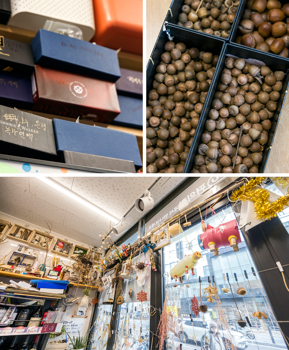 주말마다 자연을 접하다 보니 나뭇가지나 도토리가 눈에 띄어요. 공예를 좋아해서 ‘이것으로 뭐 만들어 볼까’ 싶어 호주머니에 넣어 오지요. 주중 CU를 돌보다 한갓진 시간에 꼼지락거리며 만들기 시작한 게 이렇게 많이 쌓였어요. 벌써 3년 정도 됐나… 만들다 보니 디테일도 달라지고 확실히 실력이 늘더라고요. 처음엔 아내가 요 공예품들을 집에 가져오는 것도 싫어했어요. 쓰레기 가져온다고. (웃음) 근데 지금은 ‘쓸모는 없어도 예쁜 쓰레기’라고 그래요.