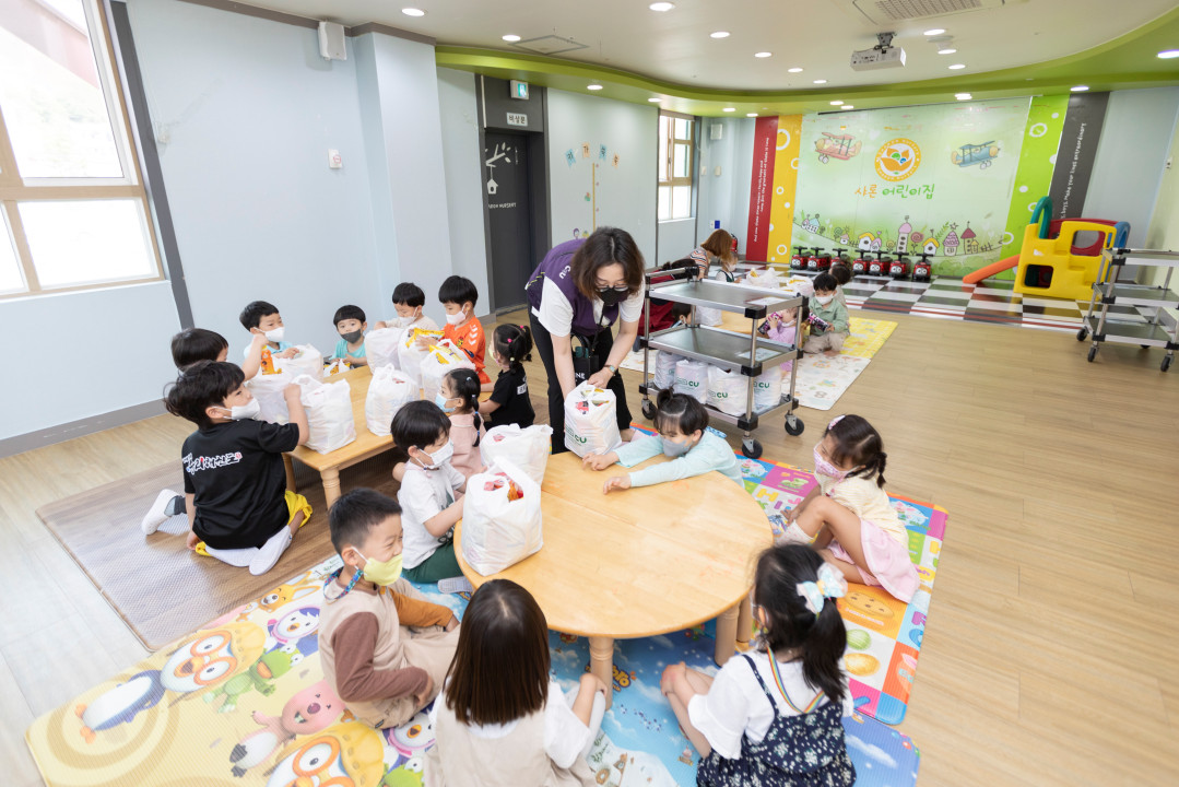 “그동안 코로나19로 어린이집 방문이 조심스러웠는데, 최근 확산세가 주춤해지고 운 좋게 ‘삼각김밥이 간다’ 코너에 참여하게 되면서 큰맘 먹고 시간을 냈어요. 새 학기가 되어 새로운 선생님, 친구들을 만난 두 딸에게 응원의 선물을 보내고 싶었거든요. ‘친구들이 포켓몬빵 먹고 싶대’라는 딸의 부탁을 ‘따로 빼둘 수 없다’며 번번이 거절한 것도 미안했고요. 포켓몬빵은 아니지만, 그래도 간식을 보고 딸과 친구들이 기뻐하면 좋겠어요.”