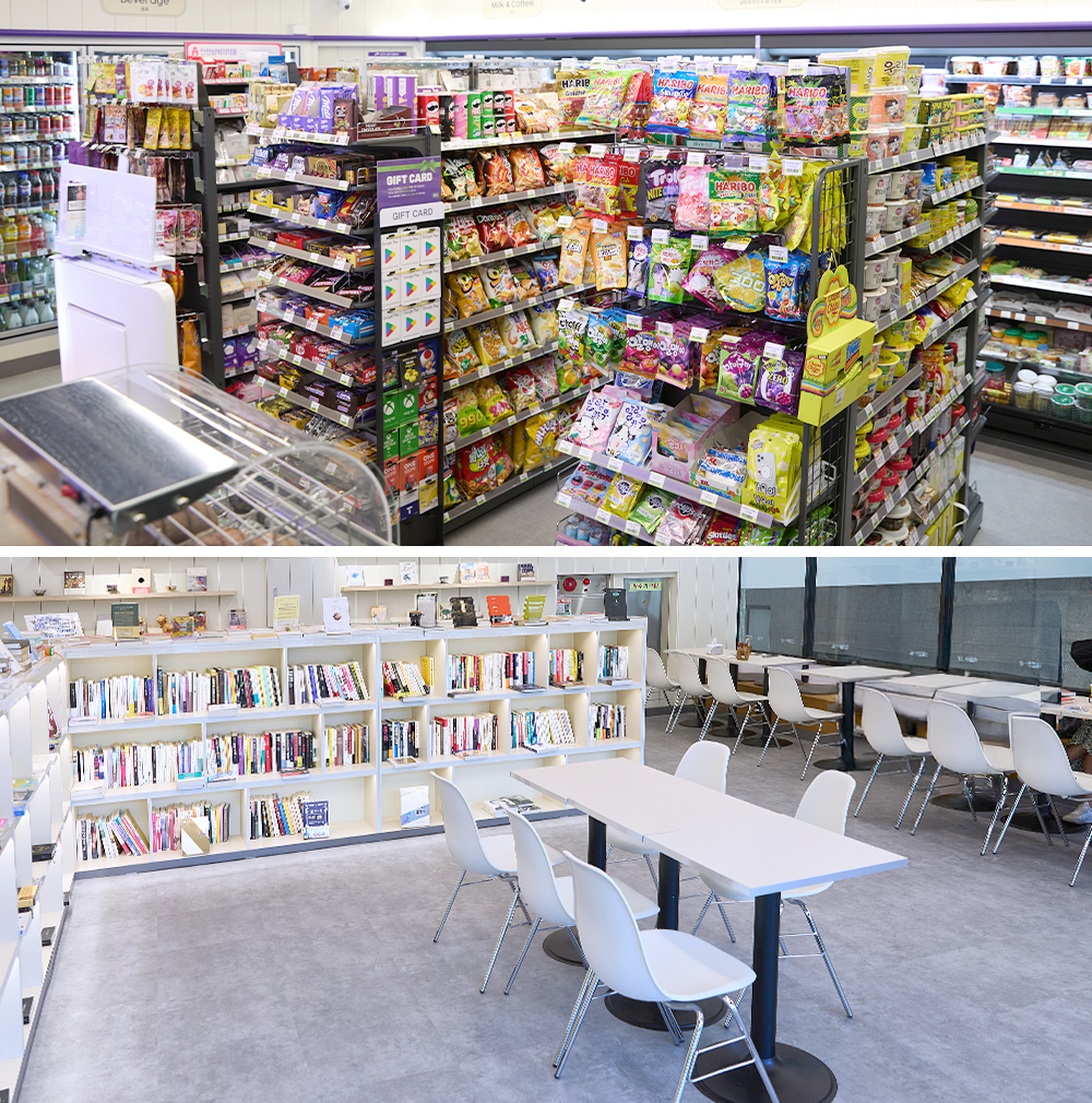 잠깐의 휴식처가 되어줍니다. 책과 쉼이 공존하는 전국 최초의 북카페형 편의점.