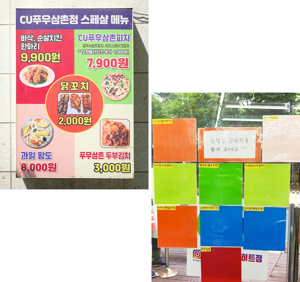 사실 처음 시작할 때는 'CU의정부타워점'이라는 이름이었어요. 그런데 편의점의 방향성을 고민하다 보니, 누구에게나 친근하고 함께하고 싶은 느낌을 주는 공간으로 만들고 싶어졌죠. 주변에서