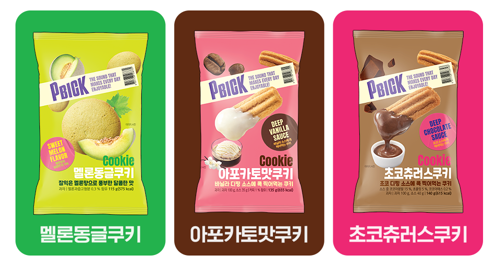 류진영 책임 피빅 리뉴얼의 시작을 알리는 제품인 만큼, 고객분들이 새롭고 감각적인 즐거움을 느끼실 수 있도록 정성껏 준비했습니다. 그 첫 라인업이 바로 쿠키 3종 시리즈인데요. 요즘 과자 업계에서 가장 핫한 맛으로 떠오르고 있는 멜론을 담은 ‘피빅 멜론동글쿠키’, 그리고 찍어 먹는 재미를 더한 신개념 찍먹 쿠키 2종, ‘피빅 초코츄러스쿠키’와 ‘피빅 아포카토맛쿠키’를 함께 선보였습니다. 기존 쿠키들이 다소 평범한 맛과 형태였다면, 피빅의 쿠키는 소스를 찍어 먹는 새로운 방식을 통해 더욱 풍부하고 다채로운 맛을 경험할 수 있도록 기획했답니다.