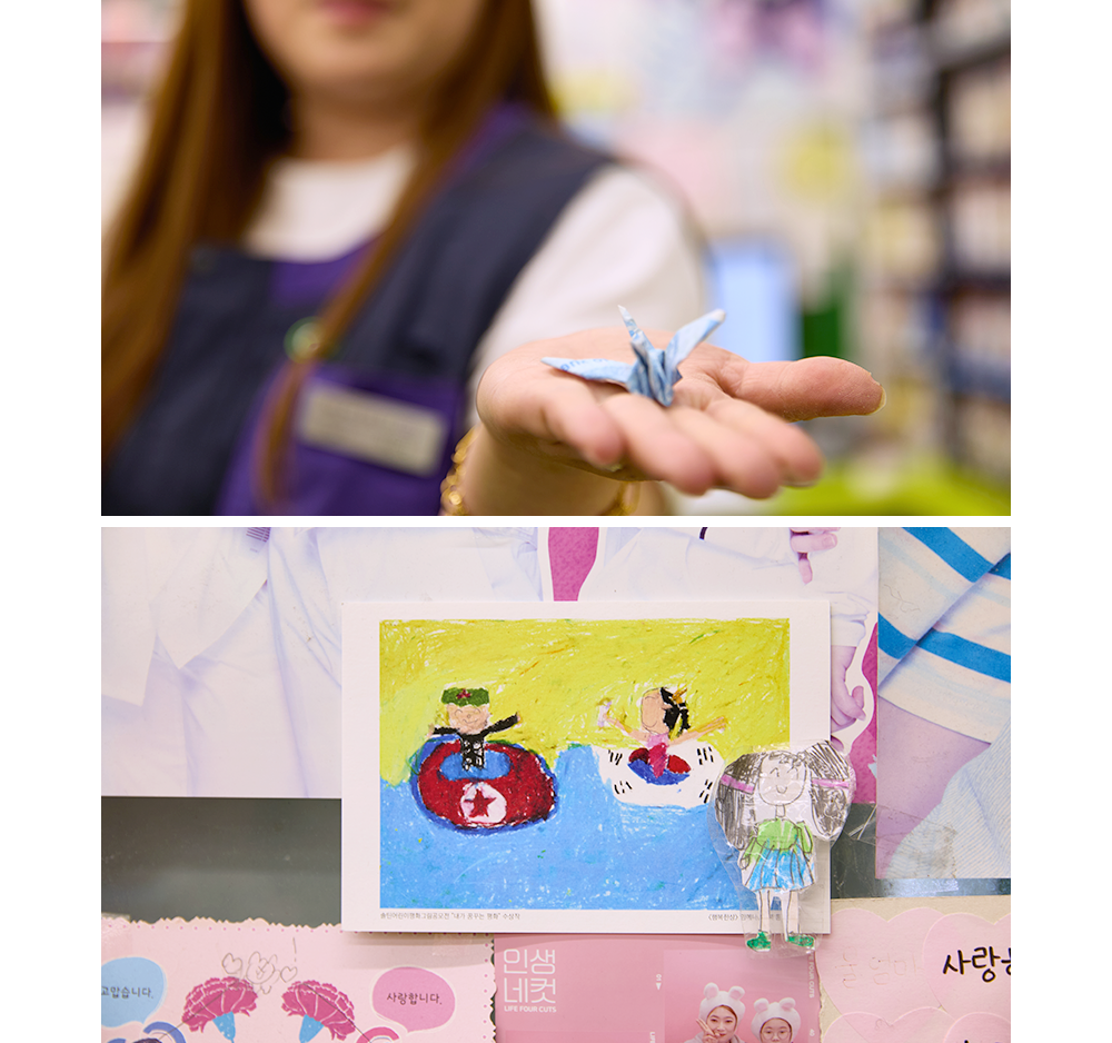 하은지 점주님 우리 편의점은 놀이터이자 약국이자 잠시 쉬어가는 쉼터예요. 급한 일이 생기면 달려오더라고요. 다친 아이들에게 약을 발라주거나 밴드를 붙여주기도 하면서 아이들과 자연스럽게 가까워졌죠. 아이들이 편하게 화장실을 쓰거나 목을 축이러 오는 것도 일상이고요. 가끔 제가 점주인지 선생님인지 헷갈릴 때도 있답니다. 그렇게 아이들과 친해지다 보니, 부모님들과도 자연스럽게 관계가 이어졌어요. 맞벌이 부부들이 잠깐 아이를 맡기고 가는 경우도 있어, 우리 편의점이 작은 어린이집이자 동네 사랑방 같은 역할도 하고 있네요. (웃음)