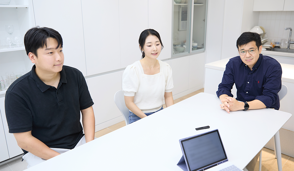 유영인 팀장 우리 팀은 팀원 개인의 강점과 개성을 존중하며, 서로의 의견을 경청하고 격려를 통해 긍정적인 에너지를 만들어 낸다는 점이 참 특별한 것 같아요. 어려운 과제에 직면해도 누구랄 것 없이 함께 뭉쳐서 이겨내는 팀입니다. 한마디로 '최강 팀워크'를 자랑하죠. (웃음)