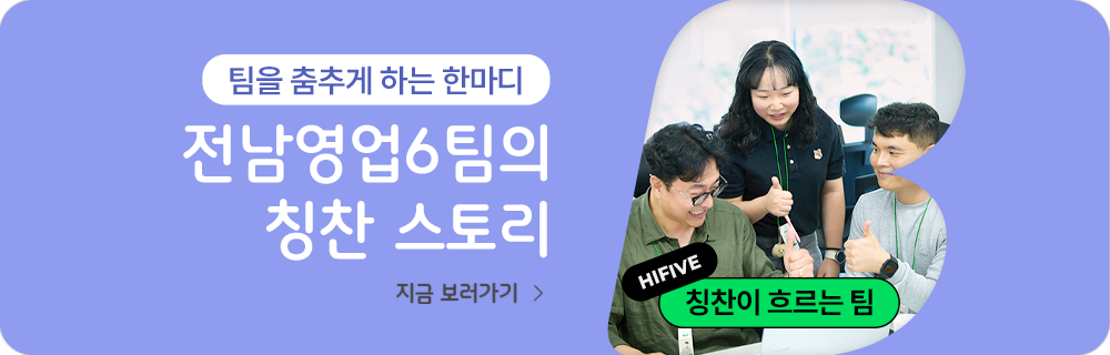 유영인 팀장 칭찬하고 감사함을 표시한다는 것은 단순히 말에 그치는 것이 아니라 서로 성장과 관계를 발전시켜 나가는 아주