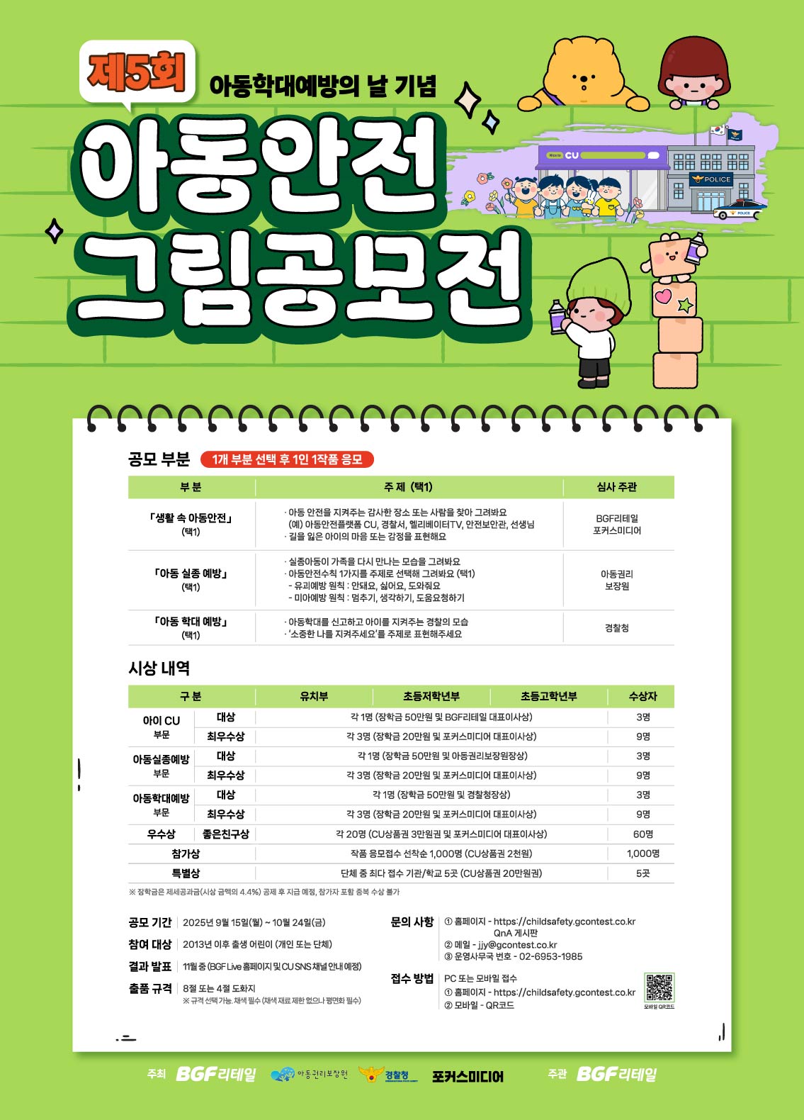 대상 (총 9명) | 생활 속 아동안전 | 유치부 | 1명 | 3명 | BGF리테일 대표이사 상장 및 장학금(50만원) |
