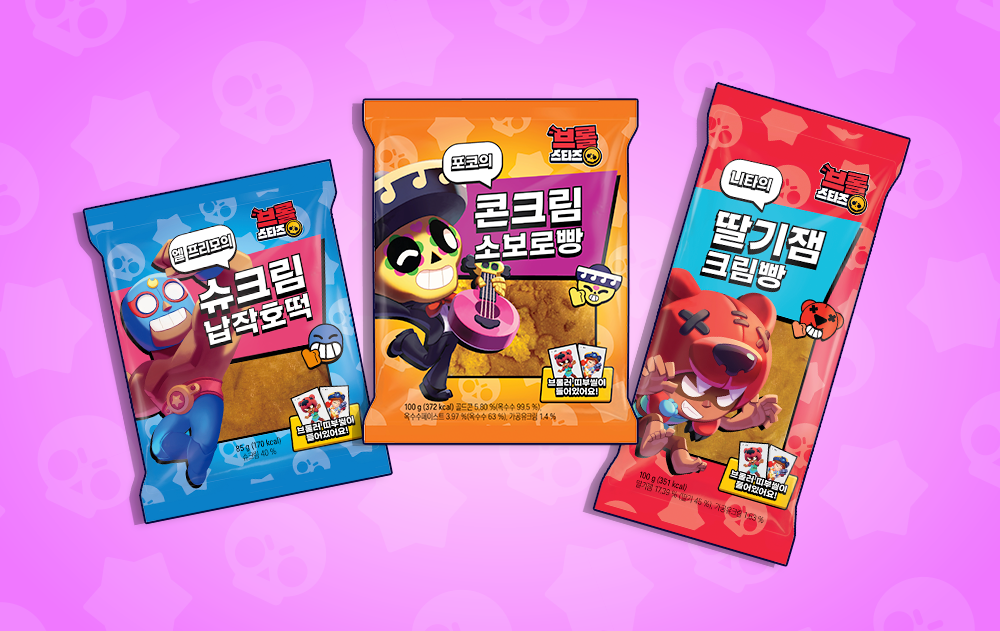 초통령의 마음을 사로잡기 위해 캐릭터별 맛의 조합부터 독특한 상품명까지, 이번 협업에는 곳곳에 재미있는 아이디어가 숨어 있습니다. 브롤스타즈의 세계관을 어떻게 맛으로 풀어냈을까요?