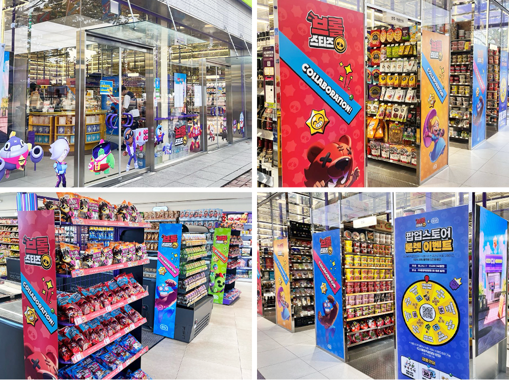 윤재환 책임 상품 출시에서 그치지 않고, 게임 속 세계를 현실로 옮긴다는 느낌으로 오늘부터 10월 30일까지 에버랜드점과 올림픽공원점 두 곳에서 팝업스토어를 진행하고 있어요. 에버랜드점에서는 한정판 띠부씰북과 전설 스타드롭 100개를, 올림픽공원점에서는 브롤러 키링 7종과 게임 재화 등 다양한 경품을 준비했습니다. 포토존과 무료 타투 체험 같은 즐길 거리도 마련되어 있으니, 방문하시면 자연스럽게 브롤스타즈의 세계를 느끼실 수 있을 거예요.