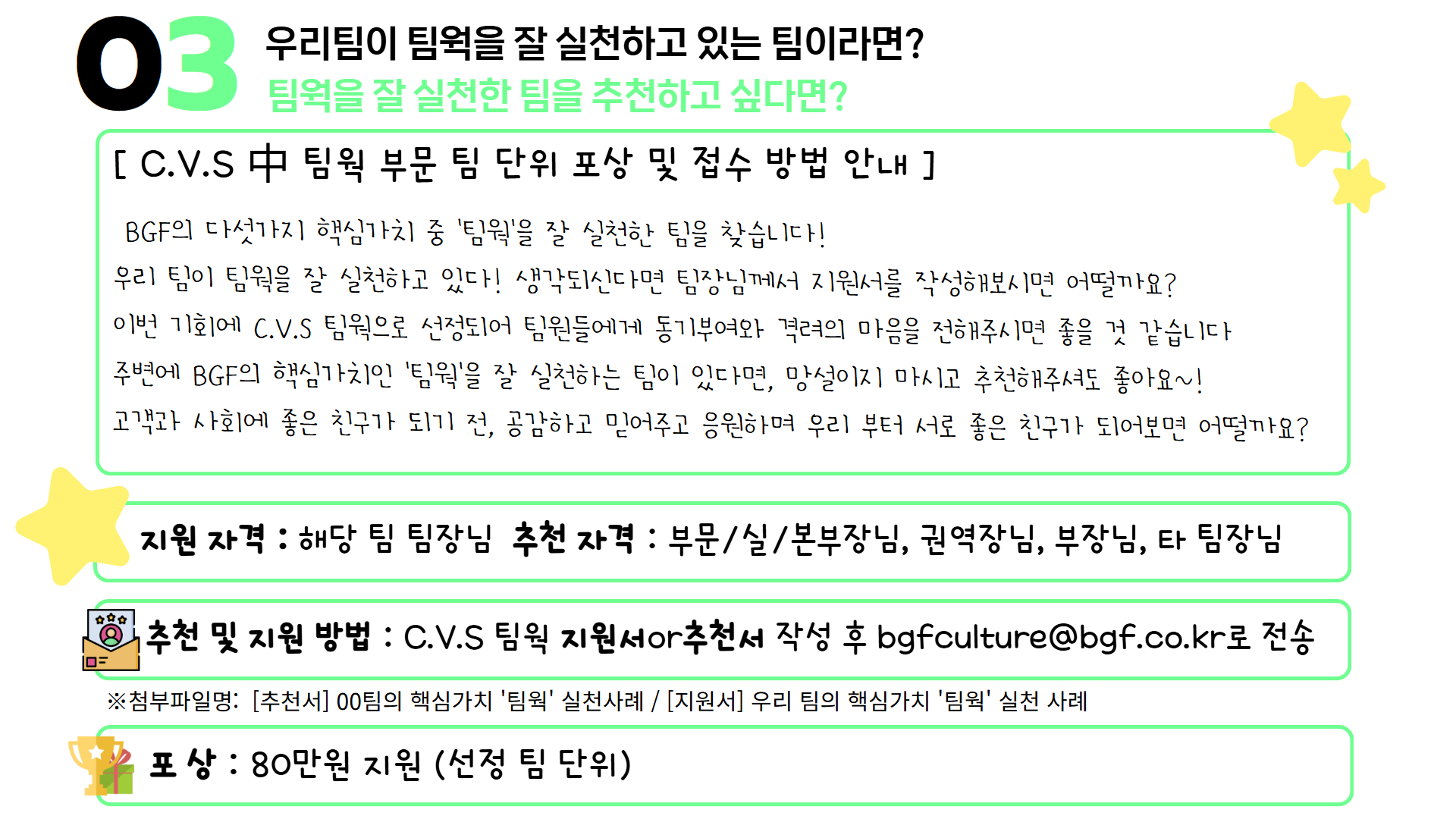 인센티브 대상자도 다수 배출했죠. 이렇게 쌓인 노력과 팀워크를 인정받아 올해 ‘팀웍’ 부문 C.V.S(Core Value Star) 수상으로 이어졌습니다.
