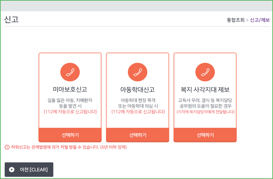 POS 미아보호신고 화면