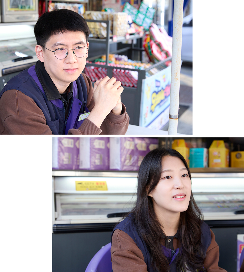 수원 여자 고등학교 인근 조용한 골목에는 밝은 에너지가 흐르는 편의점이 있습니다. 문을 열면 함께 호흡을 맞추는 권은정·정민구 점주님이 반갑게 맞이하죠. 연인에서 동료로 이어진 두 사람의 일상은 이곳에서 자연스럽게 하나의 이야기로 자라났는데요. 그런 두 분의 매장 운영 방식과 함께 쌓아온 순간들을 하나씩 들어봤습니다.