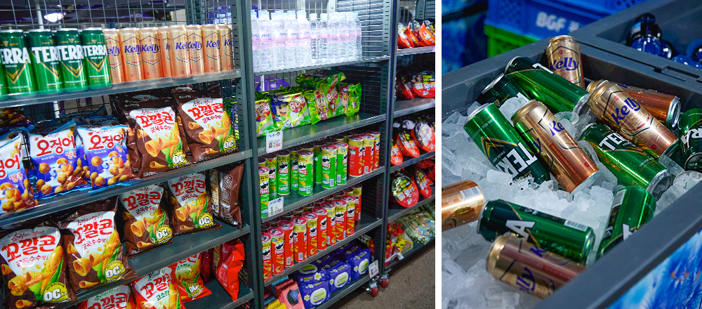 빠르게 먹기 좋은 제품들은 경기 흐름에 맞춰 수요가 확 몰리기 때문에, 확실히 일반 점포와는 다른 리듬을