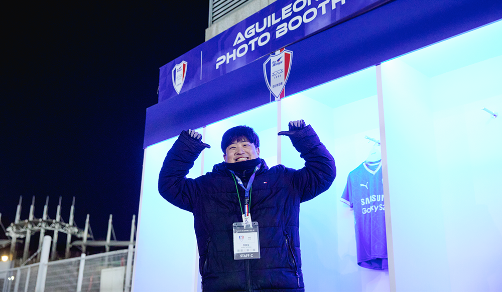 저는 수원에서 나고 자란 토박이라 이 경기장이 오래전부터 정말 특별한 공간입니다. 어릴 때 친구들과 라면을 먹으며 놀던 기억도 있고, 시험 전날 경기 보러 와서 떠들던 순간은 아직도 또렷해요. 그런 곳에서 지금은 제가 일을 하고 있다는 사실만으로도 늘 감격스럽습니다.