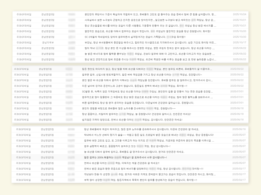 칭찬은 작지만 힘 있는 표현입니다. 누군가의 하루를 응원하는 따뜻한 마음이기도 하죠. 2026년에는 더 많은 칭찬이 더 많은 현장에서 자연스럽게 오가길 바라며 BGF LIVE는 앞으로도 여러분의 이야기를 기록하겠습니다.