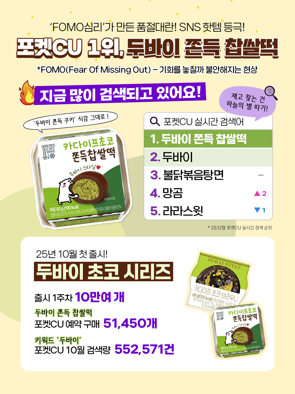 화제의 두쫀쿠, CU에도 있다! 두바이 쫀득 찹쌀떡 품절 대란!