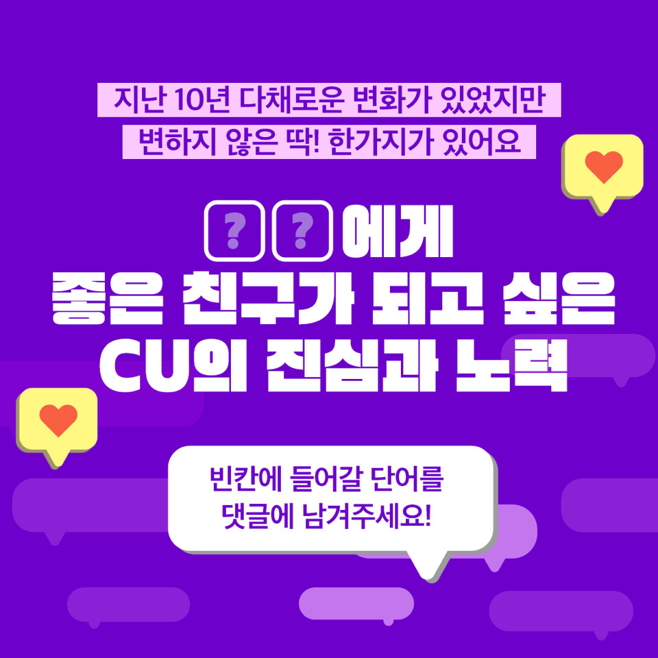 [댓글 이벤트는 CU공식 인스타그램 페이지에서 진행하고 있으니 많은 참여 부탁드립니다. 글자를 클릭/터치하면 해당 이벤트로 이동합니다!]