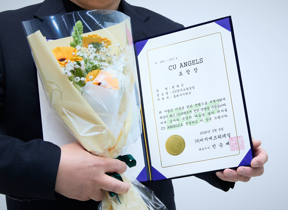 시간 속에서 있었던 일이라 더 의미 있게 느껴졌어요. 매장을 운영하면서 늘 느끼지만, CU는 점주 한 사람 한 사람을 진심으로 바라봐 주는 브랜드라는 생각이 들거든요. 그래서 이런 순간도 그냥 지나치지 않고 기억해 주시는 것 같아 감사한 마음입니다.