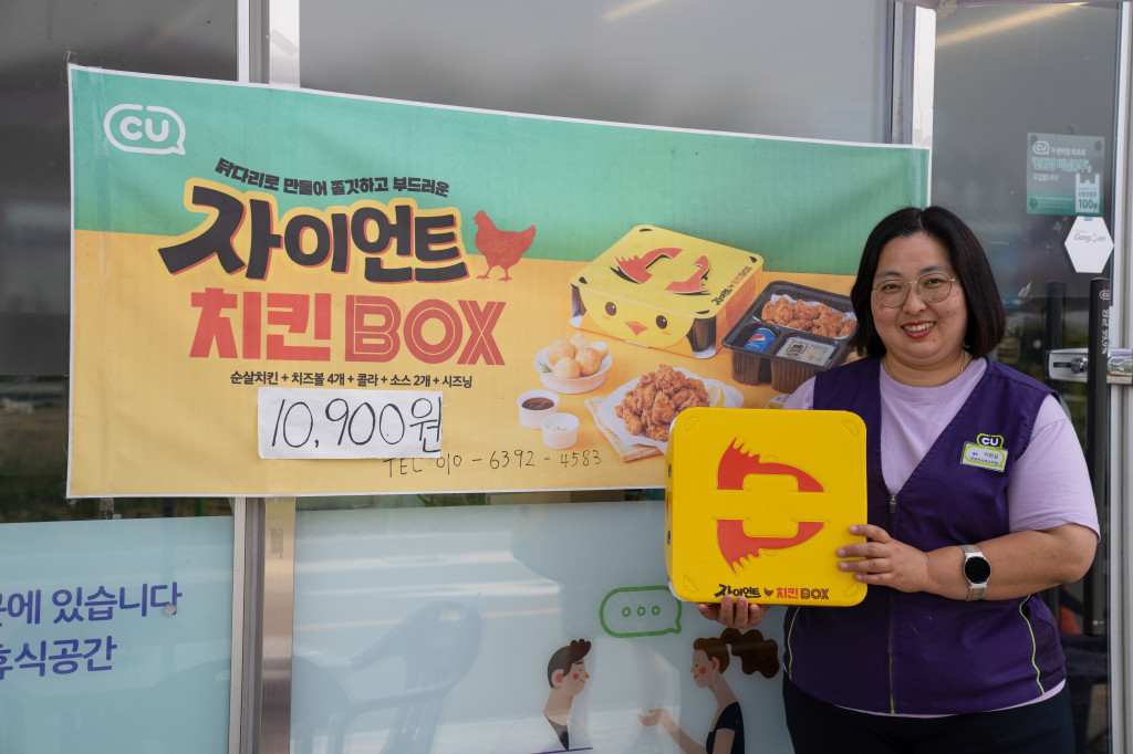 우리는 유독 치킨값에 예민합니다. 그만큼 치킨이 한국인의 소울푸드란 뜻이겠지요. 요즘 치킨값도 배달료도 껑충 뛰었습니다. 전처럼 시도때도 없이 배달해 먹기엔 부담스러워졌죠. 그래서 CU자이언트 치킨박스의 착한 가격이 더욱더 고맙게 느껴집니다.