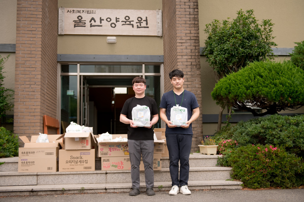 ‘후원’이란 두 글자는 그의 마음속에 늘 큰 자리를 차지하고 있습니다. CU 개점 이후 몹시 바쁜 와중에도 사회복지단체 ‘사랑의달팽이’를 통해 청각장애인에게 인공 달팽이관 수술과 보청기를 지원하는 정기 후원을 하고 있죠. 특히나 울산염포상떼빌점이 초등학교와 아파트 단지 인근에 있다 보니 아이들에 대한 관심과 애정이 커졌어요. 그가 오늘 초여름의 산타클로스를 자처한 것도 그 때문이죠.