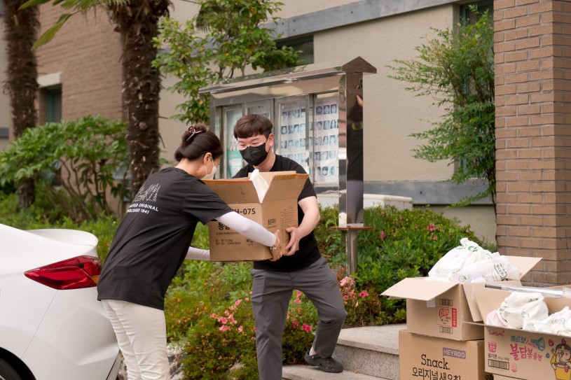 차로 40여 분을 달려 울산양육원에 도착했습니다. 해방 후 일본으로 끌려갔다 돌아온 귀한동포와 전쟁고아를 위해 1946년 설립된 곳이죠. 지금은 고아, 결손 등 부모의 보호를 받지 못하는 만 0세부터 18세 아이들이 보살핌을 받고 있습니다. 아쉽게도 아이들을 직접 만날 수는 없지만, 보육교사들이 대신 선물을 전해주기로 했습니다. 이상빈 울산양육원장은 정성 가득한 선물 꾸러미를 보고 놀라움을 금치 못합니다.