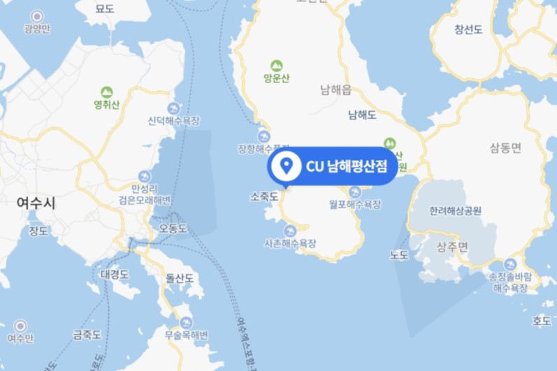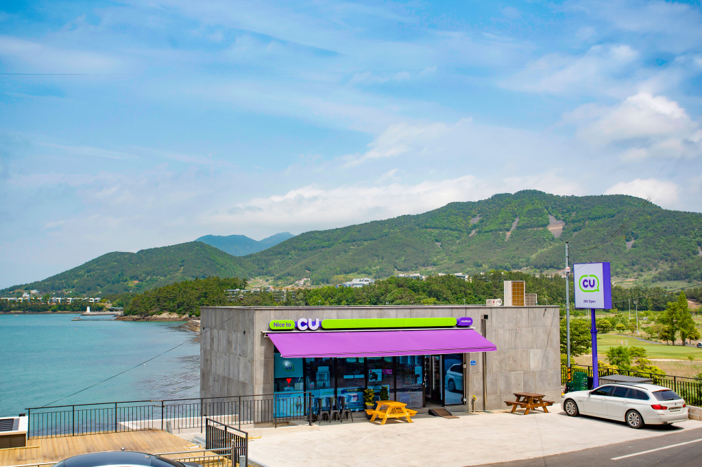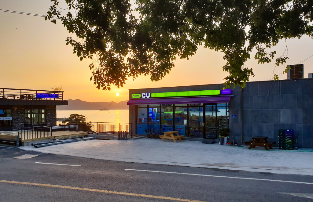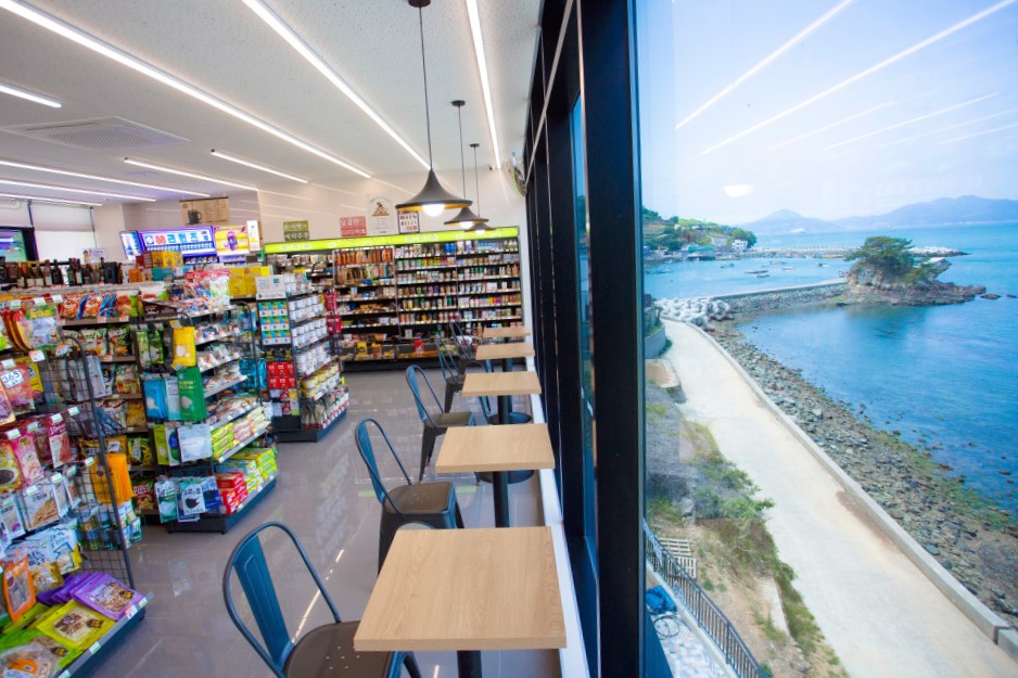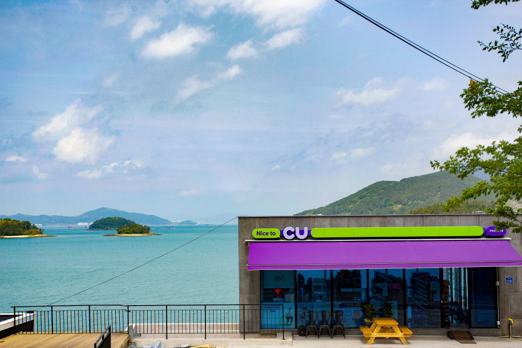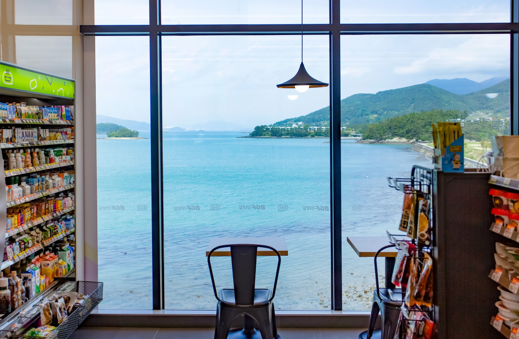 점포에 들어서자마자 시원하게 펼쳐지는 오션뷰. CU남해평산점은 바다를