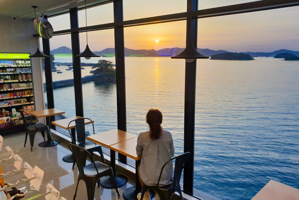 누구든지 들어와 GET 커피 한 잔 호로록, 컵라면 하나 후루룩 하며 맘껏양껏 멍 때리세요. 여기는 남해안 최고의
