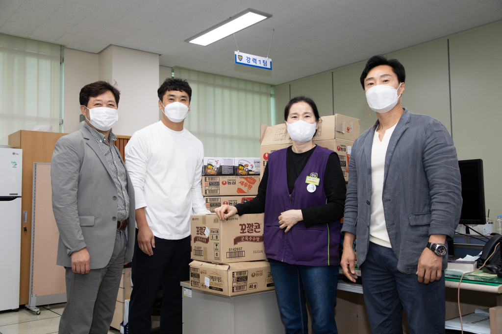 챙겨드리고 싶은 마음이 너무 커서 양이 많아졌어요. 다행히 형사님들이 소식을 듣고 마중을 나와주었네요. 배미선 점주님의 마음을 가득 담아 양손 무겁게 챙긴 선물들을 함께 옮겨봅니다.