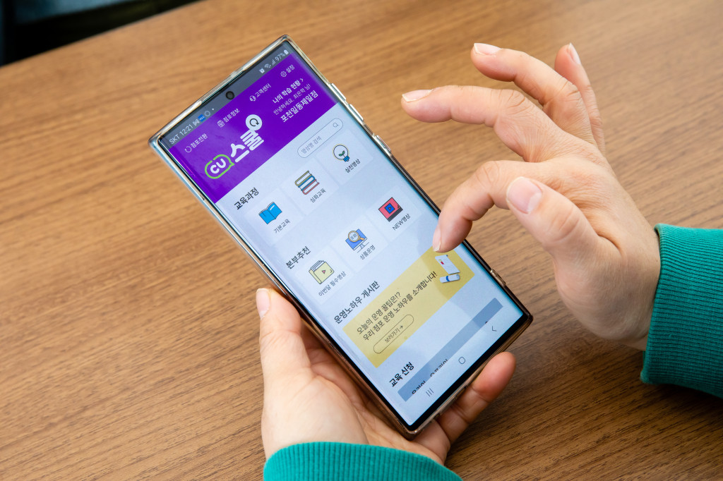최은학 점주님은 오전에 문을 열면 ‘CU스쿨’ ‘점관리’ 앱을 가장 먼저 클릭합니다. 점포 운영에 도움이 되는 콘텐츠가 정기적으로 올라오는 터라 그때그때 확인하기 위해서죠. 두 가지 앱에는 월간 세일즈 리포트, 이달의 필수 시청 영상 등 점포 운영과 관련한 다양한 정보가 제공됩니다. 혹시 놓칠까 알람을 설정해두고, 새 콘텐츠 업로드 알림 문자가 오면 바로 내용을 살핍니다.
