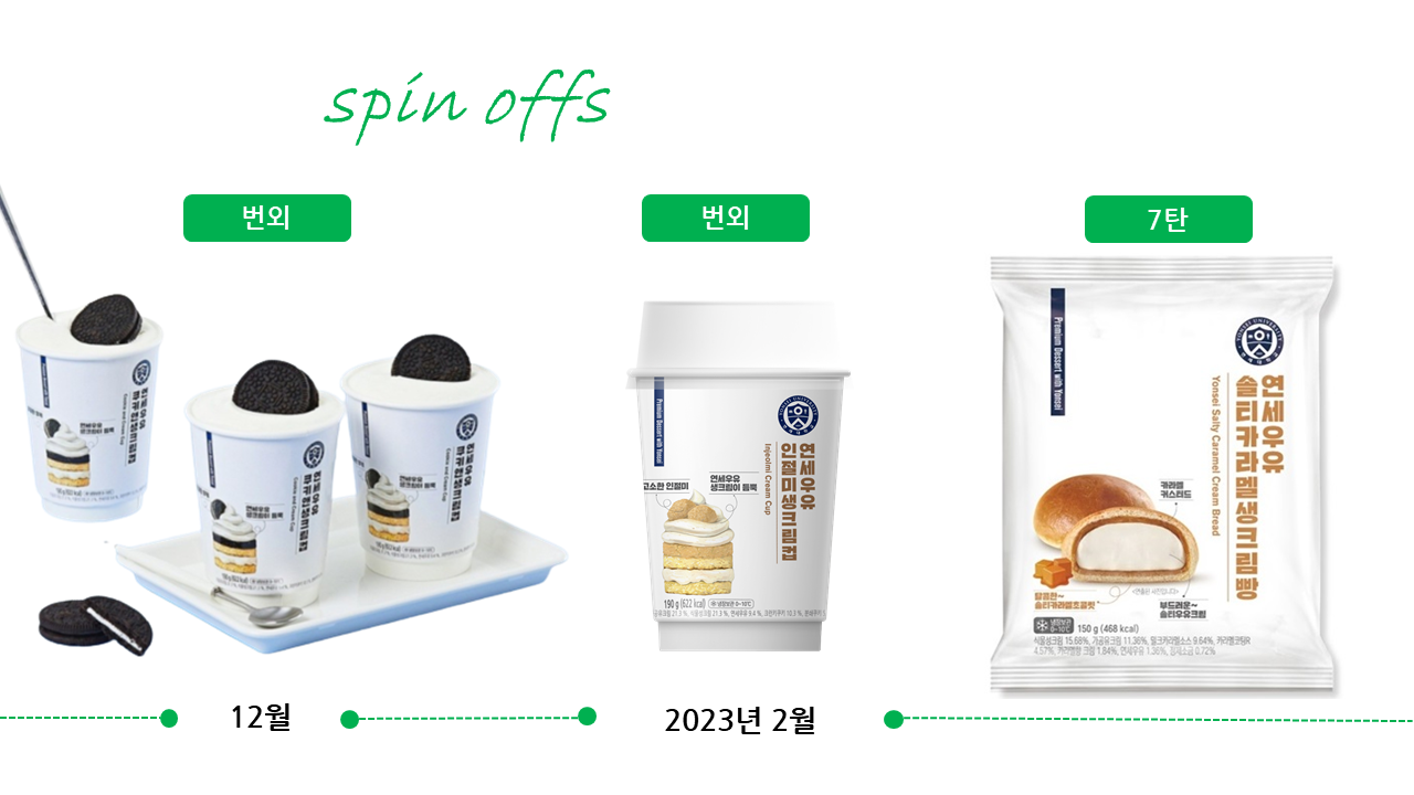 편의점 빵에서 보기 드문 맛과 품질, 비주얼은 금세 입소문을 탔고요. SNS에서 ‘탈 편의점 맛’이라 평가받으며 별다른 이벤트 없이도 ‘연세우유 생크림빵’이라는 새로운 히트작의 탄생을 알렸습니다.
