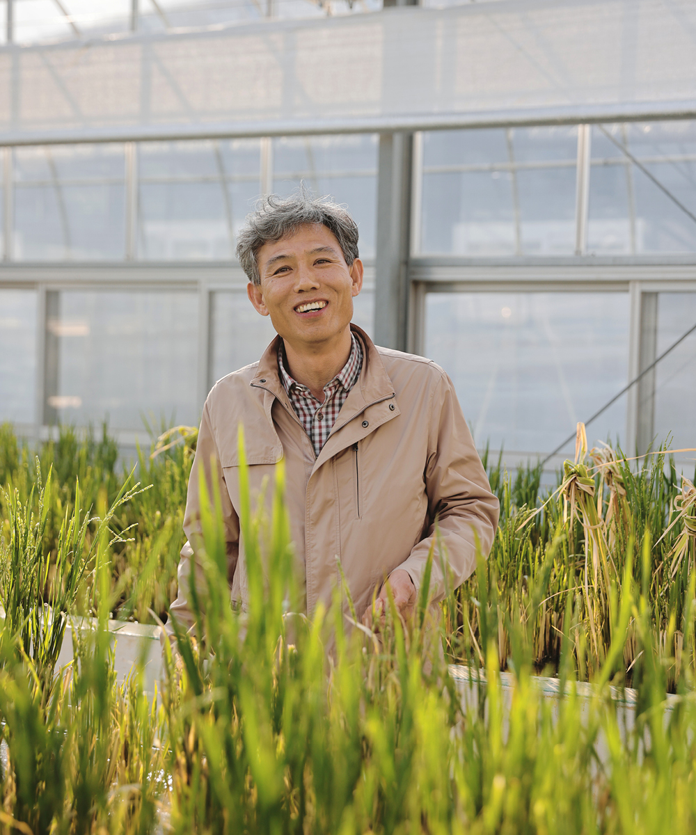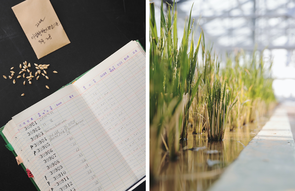 육종을 판단하기 위해서는 일단 작물을 키워야 하잖아요. 작물은 하우스나 온실에서 키우는데, 벼는 논에서 키우죠. 그래서 저희는 벼 연구소에 논의 환경을 만들어 1년 동안 벼가 어떻게 커가는지 그 과정을 전부 메모합니다. 가을이 오면 이 벼가 1년 동안 어떻게 자랐는지, 일반 농가에서 재배할 때의 장단점은 무엇인지 판단하죠. 최종 가려낸 종자로 또 재배를 시작하고요. 새청무는 그 과정을 다 거쳐서 선택된 품종이고, 지금은 새로운 종자를 개발하고 있습니다.