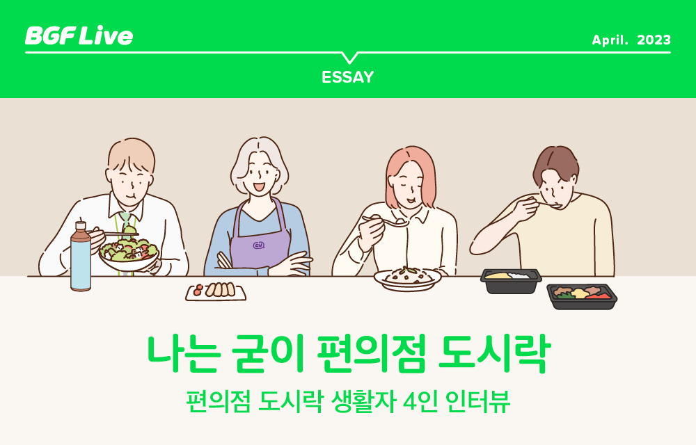세상에 맛있는 음식은 많습니다. 어쩌면 지나칠 정도죠. 먹방이며 맛집탐방이 어느 순간 콘텐츠의 주류를 이루게 된 건 세상에 맛있는 것이 이리도 많다는 사실의 방증일 겁니다. 하지만 그 모든 걸 제치고 CU의 도시락을 택한 사람이 있다면 어떨까요? 여기 모인 4인은 입을 모아 말합니다. ‘나는 굳이 편의점 도시락이 좋다고요. 아니, 이유가 뭐죠?