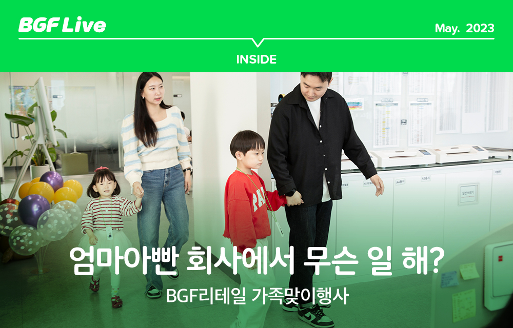 존재만으로도 위안이 되는 이름, 가족. 가정의 달 5월을 맞아 BGF리테일은 특별한 선물을 마련했는데요. 바로 가족의 자녀를 회사에 초청해 엄마, 아빠가 무슨 일을 하는지 직접 보여주는 시간입니다. 직원들의 가족까지 한식구로 여기는 BGF리테일의 마음을 전해주고 싶었거든요.