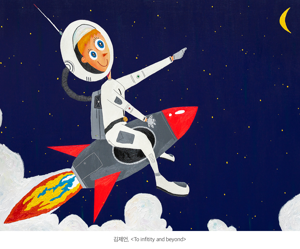 사실 일상보다 중요한 예술은 없지만, 예술은 사람들에게 평소 하지 못했던 다른 생각을 하게 해줘요. 긍정적인 영향도 주고, 때로는 비판적인 생각도 할 수 있죠. 저는 별이나 달처럼 사람들에게 꿈이나 희망을 환기하는 작품을 그리고 있고요. 예술은 대단한 것이 아니라고 생각해요. 그냥 일상에 자연스럽게 예술이 스며들었으면 합니다.