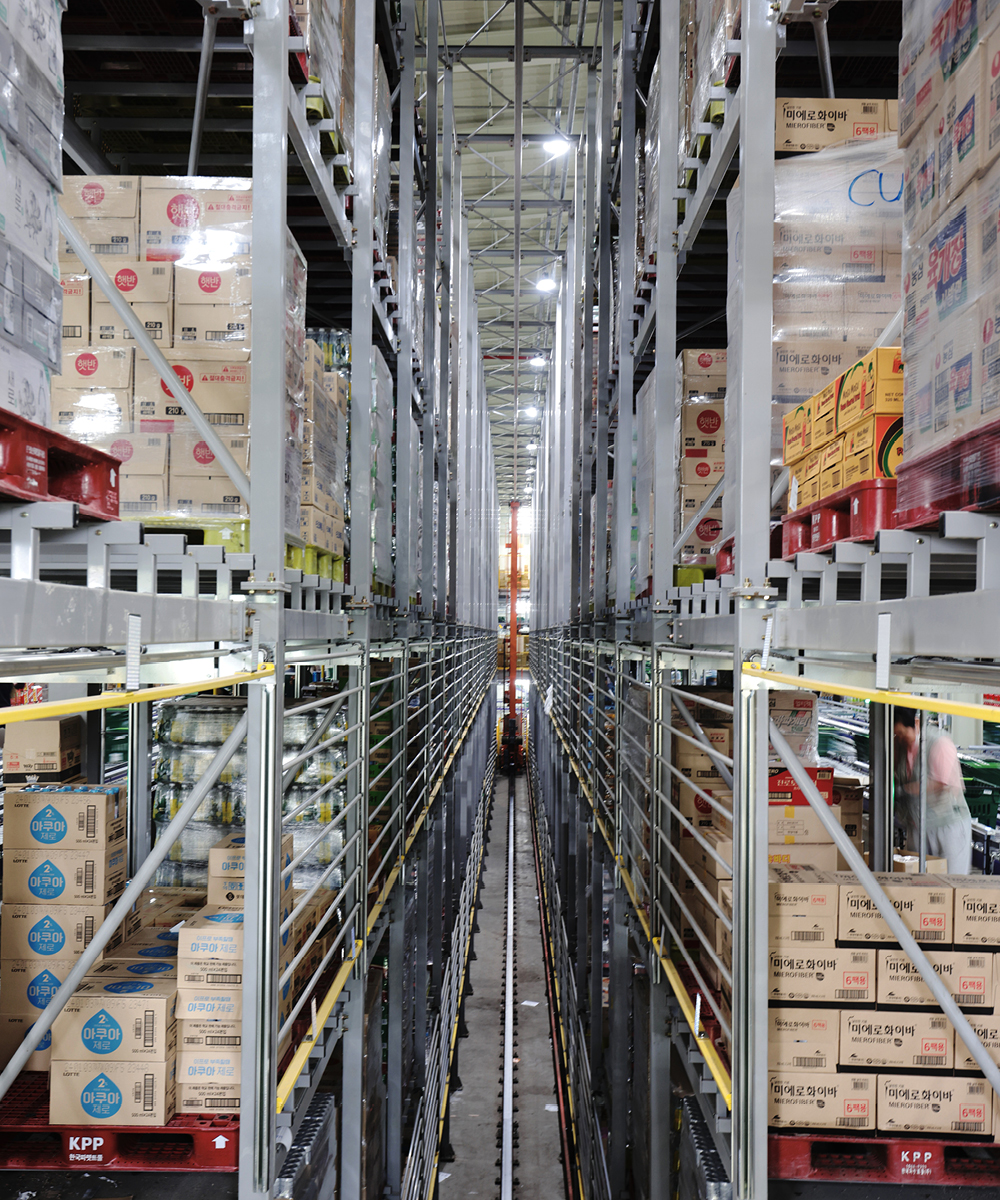 편의점 물류와 일반 물류의 가장 큰 차이는 다양한 상품군, 그리고 정시 배송이라고 생각해요. 서비스 측면에서는 정시를 꼭 지키려 노력을 기울입니다. 또, 대형마트와는 달리 소분화된 상품들을 배송해야 하기 때문에 자동화 설비를 적극 활용하고 있습니다.