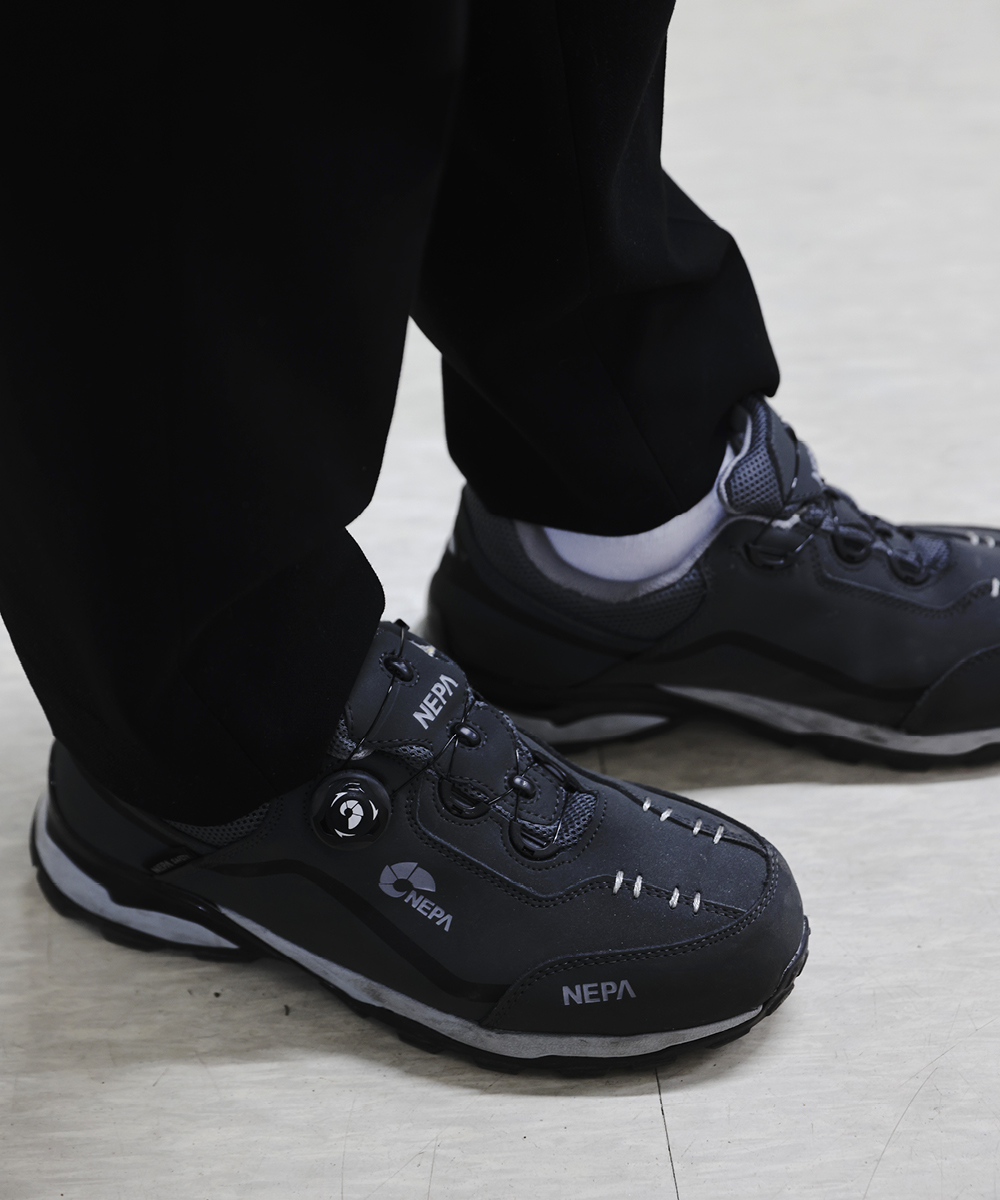 편의점 물류는 상품군이 다양할 뿐더러 물건이 적재되어 있는 경우가 많습니다. 언제 어디서 안전사고가 날지 모르기에 예방에 힘쓰고 있죠. 특히 발을 보호하려면 일할 때 안전화를 꼭 신어야 해요.