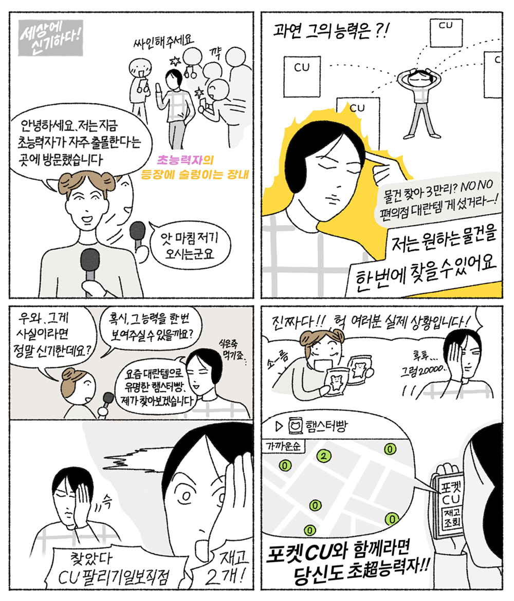 이벤트에 참여하거나 구매 경험을 제공하는 기능을 넘어, 더 유익하고 재미난 정보를 드릴 수 있는 서비스를 준비하고 있습니다. 지금의 기능과 서비스에 멈추지 않고 거듭 새로워질 포켓CU를 기대해 주세요!
